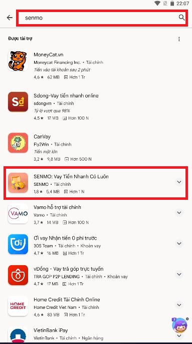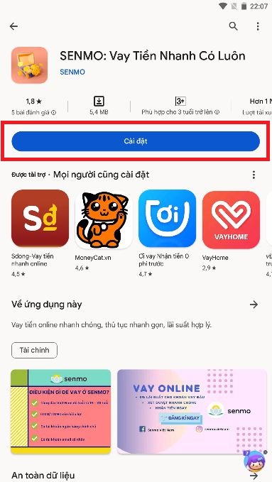 Bước 3: Sau khi có kết quả tìm kiếm, lựa chọn App Senmo và nhấn vào nút Cài Đặt.
