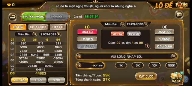 Một kiểu chơi khác cũng rất phổ biến tại iWin Club đó chính là lô đề siêu tốc. Xét về tổng thể, trò chơi này có luật tương tự với lô đề truyền thống.