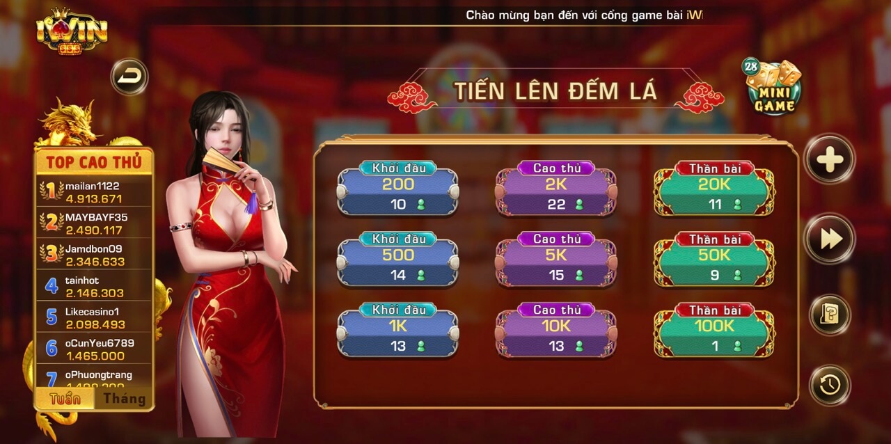 > Game bài đổi thưởng iWin Club – Tiến lên, Mậu Binh, Phỏm, Poker