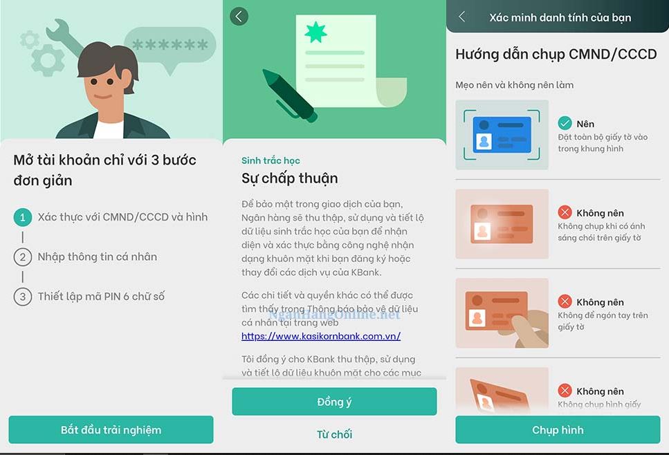Bước 7: Tiếp tục cung cấp các thông tin để đăng ký tài khoản: CMND/CCCD, Ảnh chân dung cá nhân, Các thông tin liên quan để đăng ký tạo tài khoản KBank mới.
