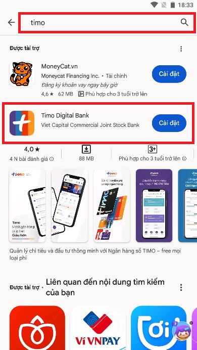 Bước 2: Trên thanh tìm kiếm ở đầu màn hình, nhập từ khóa Timo để nhận App.