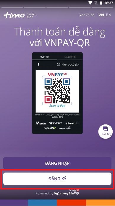 Bước 5: Tiếp theo bạn sẽ cần thực hiện các bước tạo tài khoản ngân hàng Timo mới. Nhấn vào nút Đăng Ký Mở Tài Khoản.