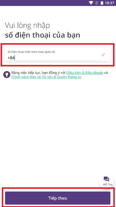 Bước 6: Điền Số Điện Thoại chính chủ của bạn và nhấn vào nút Tiếp Theo. Một mã OTP sẽ được gửi về điện thoại. Sử dụng mã OTP để điền vào App bắt đầu tạo tài khoản mới.
