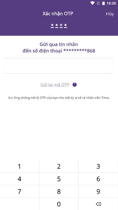 Bước 7: Bạn sẽ cần chuẩn bị các giấy tờ tùy thân như CMND/CCCD theo yêu cầu xác thực của App và các bước xác thực khuôn mặt. Xác thực xong theo hướng dẫn của App Timo, bạn sẽ được cấp Tài Khoản và Mật Khẩu. Sử dụng để đăng nhập vào App.