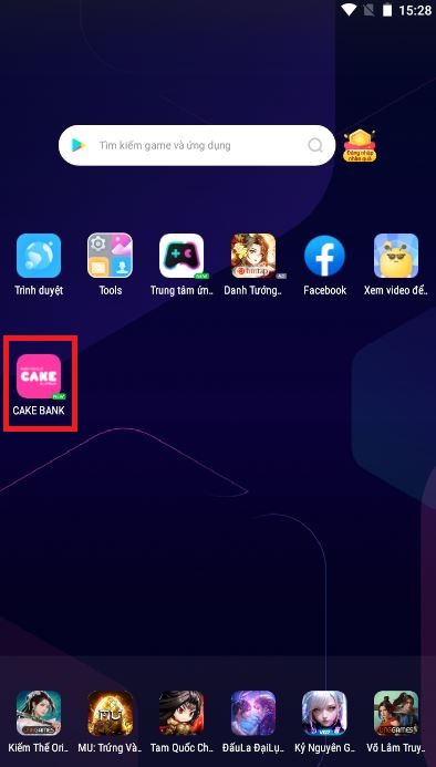 Bước 2: Nhấp vào mục Tìm kiếm trong cửa hàng, nhập từ khóa “Cake” để nhận App.