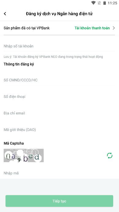 Bước 5: Mở App VP Bank, bạn sẽ thấy giao diện mở đầu như hình. Nhấn vào Đăng Ký tài khoản mới.